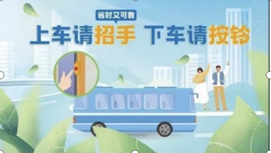 2. 乘车时请提前做好准备,上车及时招手、下车提前按铃或口头告知驾驶员,切勿临时示意。上、下车时扶好栏杆、扶手,保障出行安全。